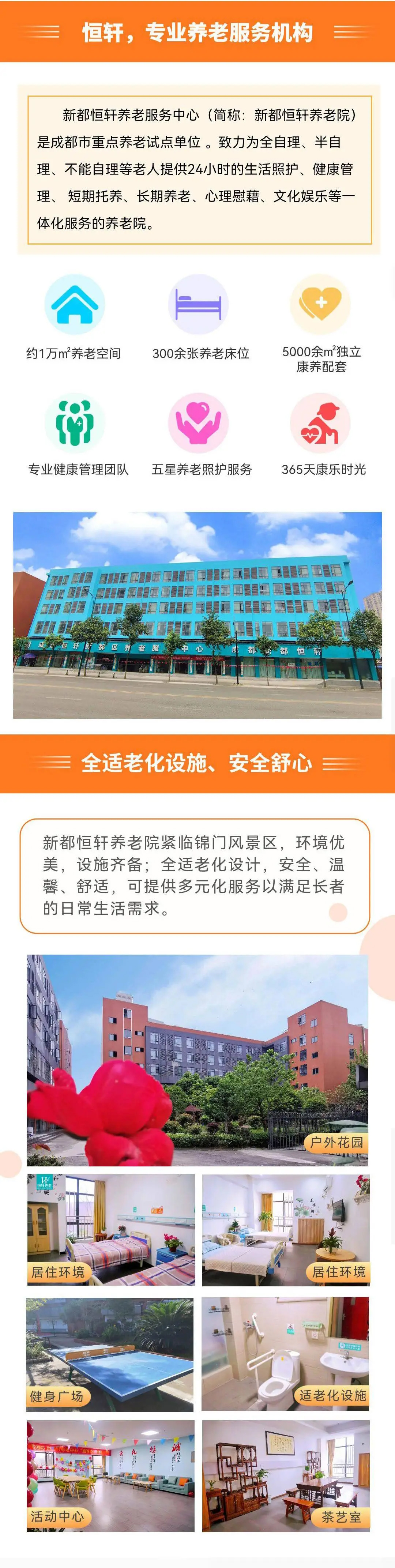 请点击输入图片描述(最多18字) 成都新都恒轩医养中心,以专业医养实力、普惠型收费、温馨居住环境,为长者提供有尊严、有保障的养老生活,欢迎家属实地考察、咨询详情。 |